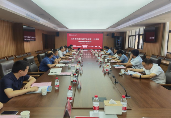 唐云志汇报学校国家科技奖培育和成果转化情况,并简要介绍了学校近年来在科技创新方面取得的成绩。他表示,近年来,在省科技厅的关心和支持下,学校围绕国家和江西省重大科技需求,通过目标引领、体制创新、搭建平台、产教融合多措并举,建设服务江西经济社会发展最具贡献的大学,以创新链赋能产业链,学校科技创新成果不断产出,科技创新能力显著提升。