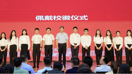 大会现场还举行了新入职学工系统人员佩戴校徽仪式。