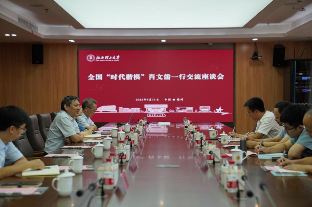 本网讯 9月11日上午,全国“时代楷模”、国家安全生产应急救援中心原副主任兼总工程师肖文儒一行来访。校党委副书记、校长温和瑞,校党委副书记罗仙平会见了肖文儒一行,并在三江校区濂溪楼2号会议室进行了座谈交流。