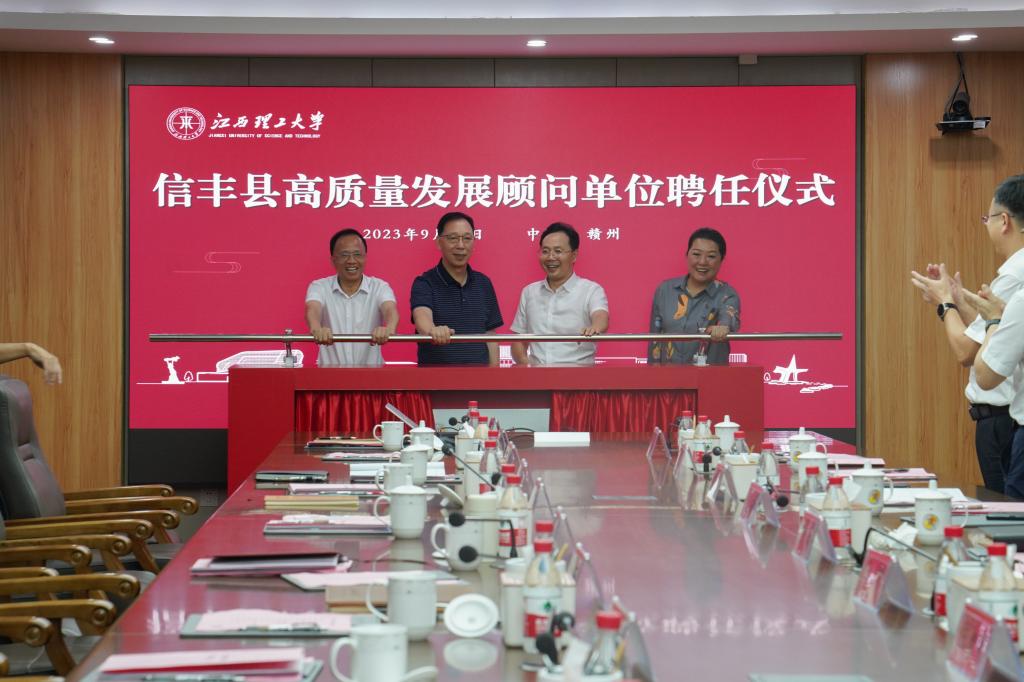 会上,杨斌、温和瑞、袁炎、张琳共同为信丰县高质量发展顾问单位揭牌。