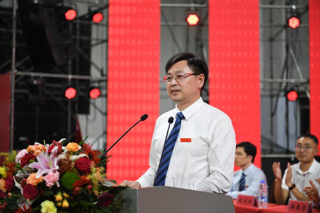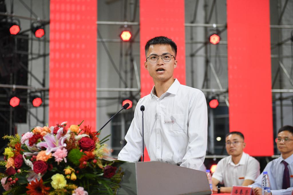 能源与机械工程学院软件工程(智能制造方向)专业231班寇晨熙作为新生代表在发言中描述了对江理的初印象,展望了大学四年的学习生活,并与所有新生共勉:在大学生活中自立自强,相信“人的潜力是无限的”;笃信笃行,相信“天上不会掉馅饼”;矢志一流,相信“又红又专才是正道”。在新的航程开启下,不负韶华,奋楫争先,努力描绘出绚丽灿烂的青春画卷。