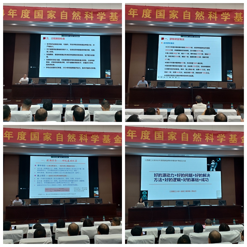 获国家基金获批情况及存在问题进行了分析,并对科研项目过程监督及2024年申报工作作了布置。