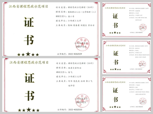 近年来,学校获批1个江西省高校课程思政教学研究示范中心,7门课程获批江西省高校课程思政示范课程,其中5门省级立项课程已在2023年7月前上线新华思政平台,在校内外形成示范辐射效应。