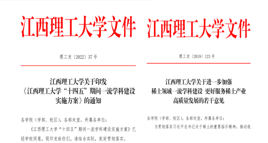 学校紧密结合国家战略和经济社会发展需求,坚持“面向有色、聚焦稀土、突出特色、分层分群、内涵发展”学科建设理念,以持续推进稀土领域世界一流学科建设为主线,大力加强“双一流”建设。冶金工程、矿业工程和材料科学与工程三个学科分别获江西省“十四五”一流(高峰优势、高峰特色、潜力发展)建设学科,获批总数位居前列。以一流学科建设为引领,着力提升学校办学实力与水平,科学谋划和全面启动了有特色高水平大学建设。