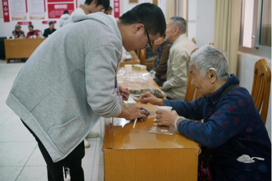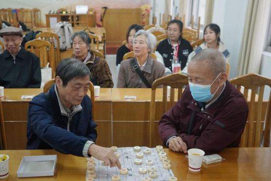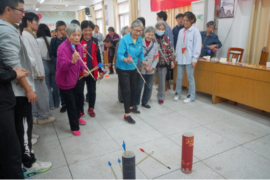 伴随着舒缓的音乐,离退休教职工与志愿者在投壶与象棋比赛中进行了精彩互动。投壶活动中,离退休教职工们手持箭柄,全神贯注,一击即中;象棋赛场,切磋棋艺,其乐融融。开心的笑容在他们脸上洋溢着。“很喜欢这次活动,同学们的热情感染了我,让我们感受到年轻人的青春活力以及学校对离退休教职工的关爱。”离退休教职工们纷纷表示。