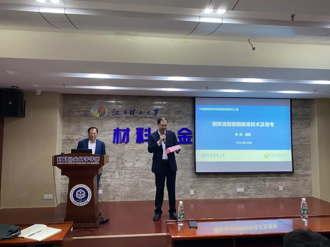 21日下午,朱荣教授在黄金校区稀土大楼A519进行了“钢铁流程极限碳排的研究及进展”主题报告。朱荣教授对钢铁流程减碳进行了具体分析,并对转炉长流程极限碳排技术、电炉炼钢近零碳排技术、二氧化碳在炼钢的资源化应用技术等进行解析,同时介绍了团队开展钢铁低碳技术的研究历程。朱荣表示,钢铁工业是国民经济的重要基础产业,也是能源消耗和碳排放重点领域,双碳背景下,我国钢铁工业面临巨大减碳挑战,学校应当发挥冶金工程学科的特色和优势,充分利用赣南有色金属丰富资源,聚焦国家、行业、大中型企业的需求,明确研究方向,解决专业难题,争取有突破性的研究成果,更好地服务区域经济社会发展,提高学校社会声誉和办学水平。