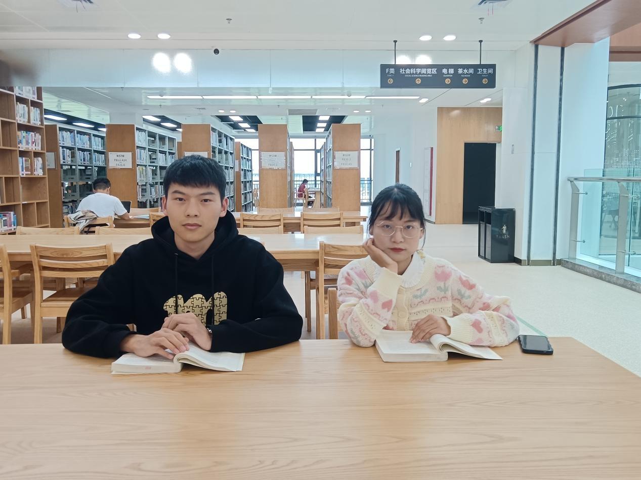 因羽毛球而结缘的二人,更因彼此的优秀相互吸引。谈及其相处方式,两人提到最多的便是“相互扶持,共同进步”,他们的课余时间大多都是一起“泡”在图书馆,遇到学术问题就及时钻研讨论,不彻底解决不罢休,甚至在吃饭散步时也不忘解疑。为缓解彼此压力,“我们偶尔也会在周末出去吃顿好的犒劳犒劳自己,毕竟劳逸结合、张弛有度,方能游刃有余。”冯曦玲笑着说道。在图书馆的时光记录了他们并肩埋头苦读的奋斗历程;在体育馆的运动时刻承载力了他们一起打羽毛球的欢声笑语;在校园里每条小路上留下了他们坚定向前的足迹。露往霜来,可贵的大学时光他们从未虚度。
