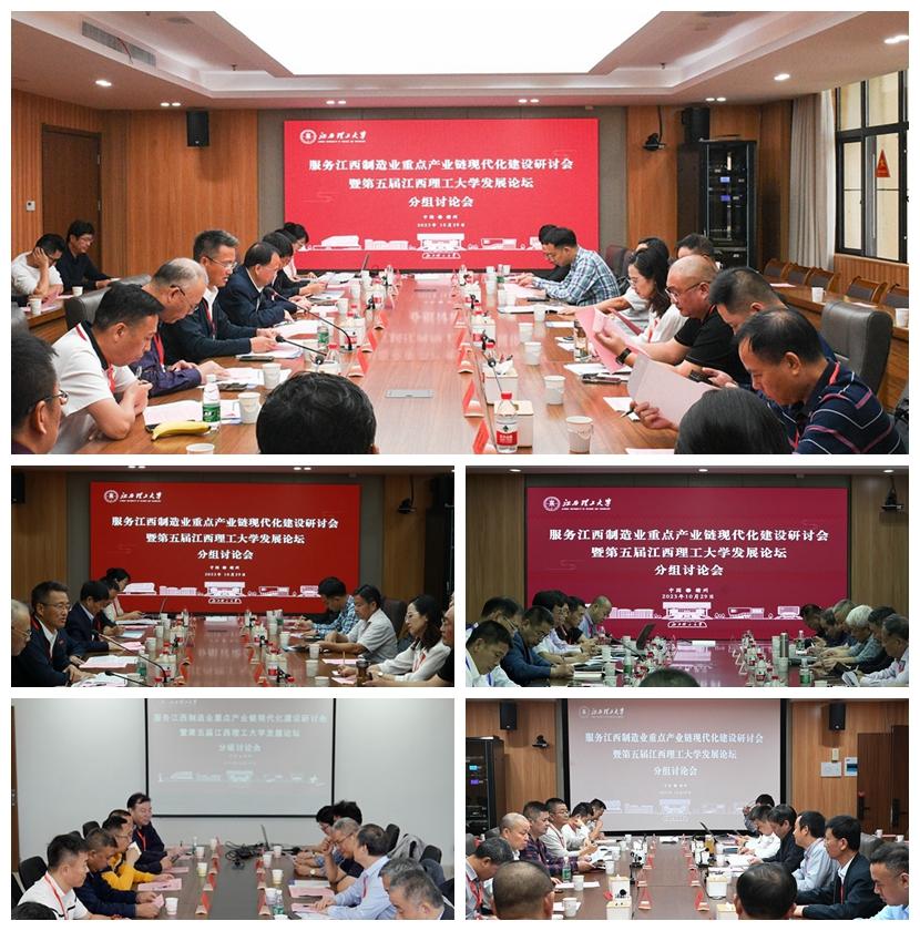在会议第二阶段的分组研讨环节,发展论坛分成五个组别进行研讨交流,主要针对服务江西制造业重点产业链现代化建设、加强校友会平台建设以及深化校友与母校交流合作等方面展开讨论。会议倾听了各地校友对学校人才培养、科技创新、科研成果转化、校企合作、国际合作交流、文化传承及校友会建设发展等方面的建议和意见。