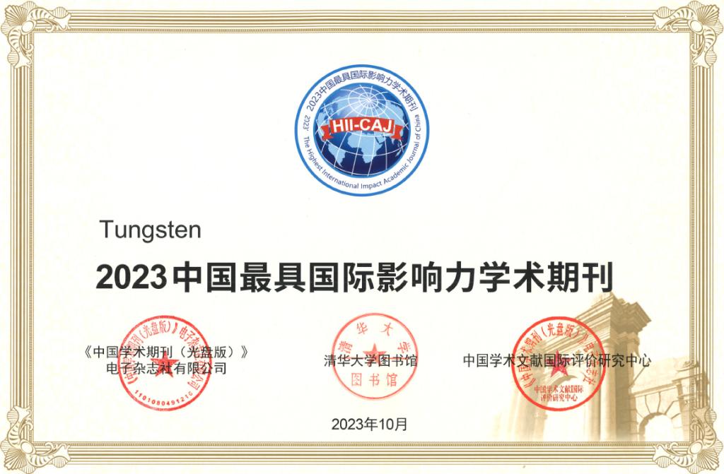 在本次发布的《中国学术期刊国际引证年报(2023版)》报告中,《钨科技(英文)》期刊影响力指数、国际总被引频次、国际他引影响因子等指标均稳步提升,在175种“中国最具国际影响力学术期刊”排位较2022年前移7位。在《中国学术期刊影响因子年报(2023版)》报告中,《有色金属科学与工程》复合影响因子由1.271上涨为1.512,在冶金工程技术学科类目排名位列Q1区;《江西冶金》复合影响因子由0.411上涨为0.423,在冶金工程技术学科类目排名位列Q4区;《西瓜视频