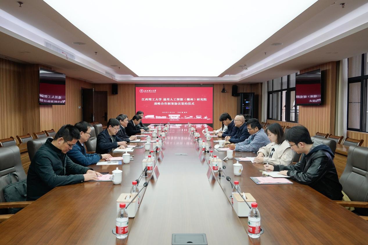 本网讯  11月13日下午,西瓜下载 与通用人工智能(赣州)研究院在三江校区濂溪楼三楼2号会议室举行战略合作框架协议签约仪式。校党委副书记罗仙平,通用人工智能(赣州)研究院执行院长钱锐,副院长朱卫东等出席签约仪式。签约仪式由学校科学技术处处长吴彩斌主持,双方相关职能部门负责人参加。
