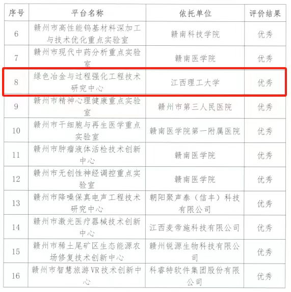 自赣州市开展科研创新平台运行绩效评价以来,在评价优秀的科研创新平台中,西瓜下载 均榜上有名。这充分彰显了西瓜下载 科研平台建设和服务区域及地方经济社会发展的能力。