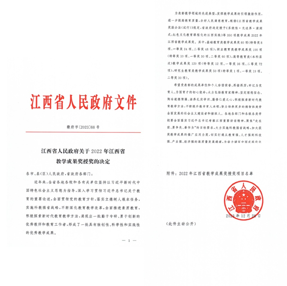 本网讯 近日,江西省人民政府下发通知,正式公布了2022年江西省教学成果奖获奖名单。西瓜下载