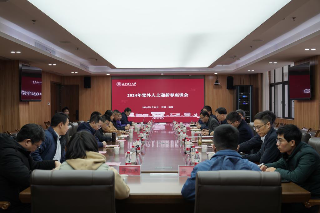 在三江校区濂溪楼2号会议室召开2024年党外人士新春座谈会。校党委书记杨斌,校党委常委、副校长龚姚腾,校党委常委盛晓明、刘志刚、汪锋锁以及相关职能部门负责人和各民主党派统战团体负责人、党外知识分子、无党派人士等参加会议。会议由校党委常委、统战部部长汪锋锁主持。