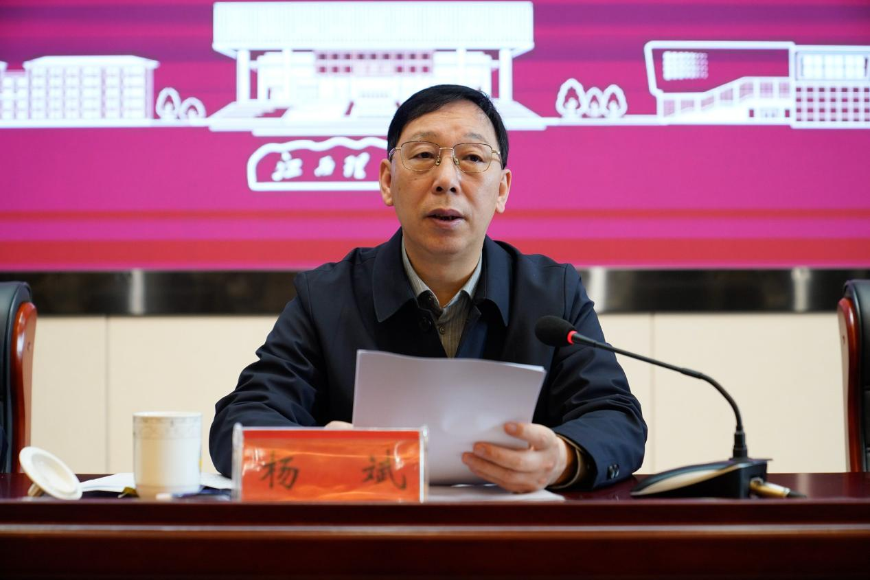杨斌代表校党委常委会书面传达学习2024年全国教育工作会议、省委十五届五次全会精神,并作工作报告。他指出,过去一年,学校党委常委会在党中央和省委的坚强领导下,坚持以习近平新时代中国特色社会主义思想为指导,深入学习宣传贯彻党的二十大精神、习近平总书记考察江西重要讲话精神以及省委十五届四次全会、五次全会精神,严格落实党对学校工作的全面领导,深入落实立德树人根本任务,牢牢把握党管人才原则,聚焦国家重大战略需求和区域经济社会发展,坚持以师生为中心,深入贯彻新时代党的建设总要求,为奋力实现“十四五”发展规划目标,积极服务江西打造“三大高地”、实施“五大战略”,奋力谱写中国式现代化江西篇章贡献江理力量。