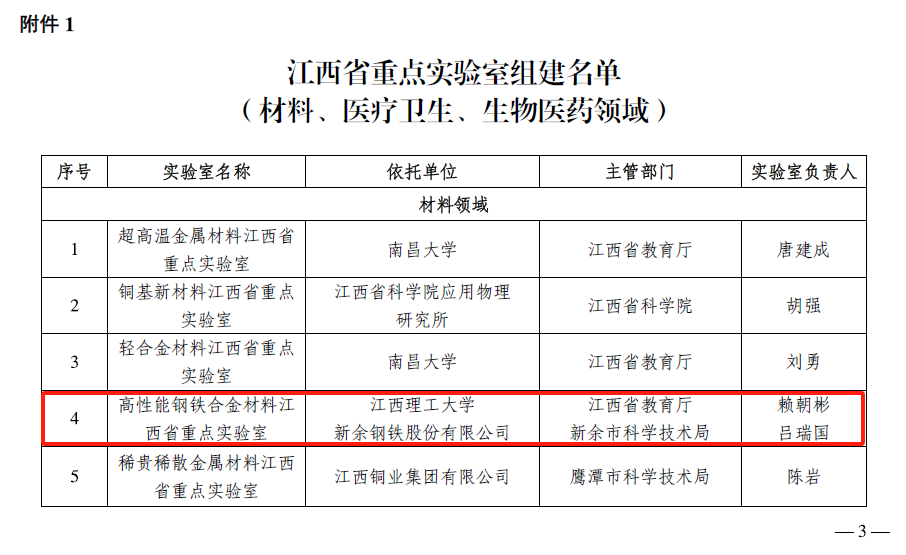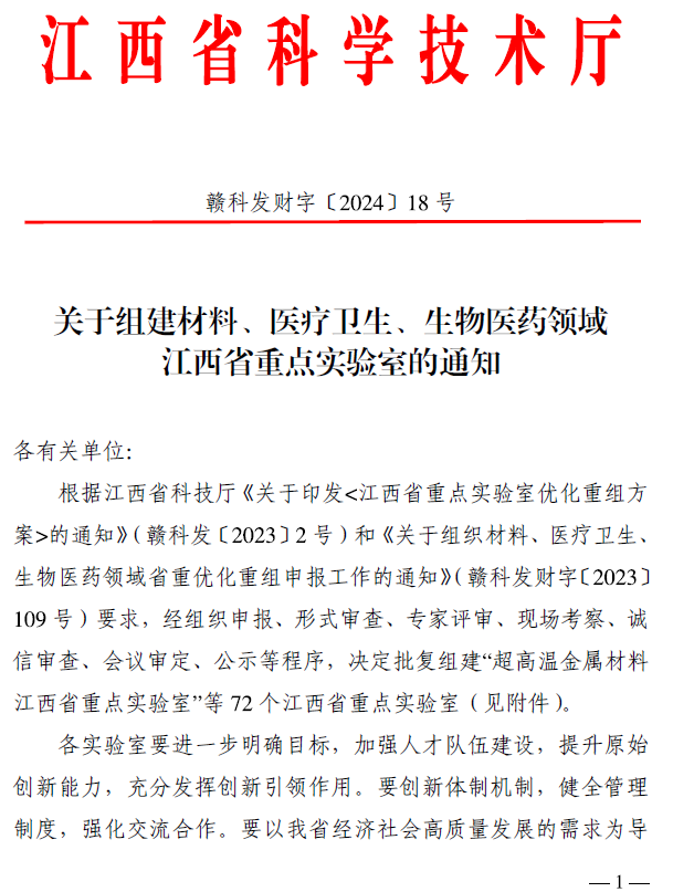 本网讯  近日,江西省科技厅下发了《关于组建电子信息、农林领域江西省重点实验室的通知》(赣科发财字〔2024〕2号)和《关于组建材料、医疗卫生、生物医药领域江西省重点实验室的通知》(赣科发财字〔2024〕18号),西瓜下载 申报的多维智能感知与控制江西省重点实验室、功能晶态材料化学江西省重点实验室、金属磁性材料及器件江西省重点实验室、高性能钢铁合金材料江西省重点实验室获批组建。
