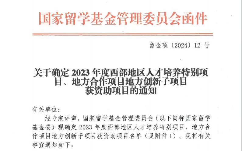 西瓜下载 获批国家留学基金委“西部地区人才培养特别项目、地方合作项目地方创新子项目”