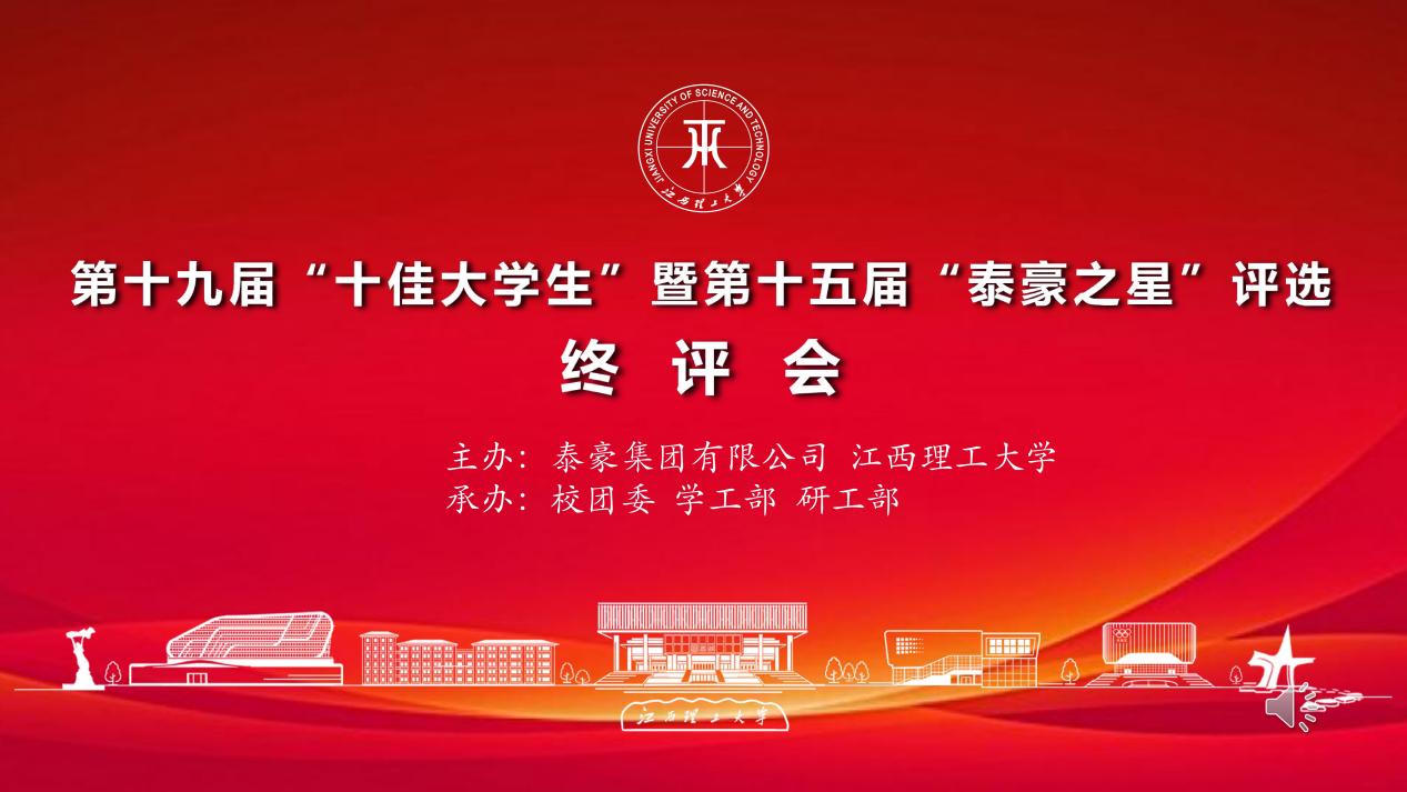 主办,校团委、学工部、研工部承办。泰豪集团有限公司战略委员会委员匡华,泰豪集团有限公司培训中心总经理、泰豪教育基金会秘书长朱伟芹,校党委常委、副校长董冰岩,校党委常委、党委宣传部部长盛晓明,校学生工作指导委员会成员及各学院教师评委、学生评委参加终评会。此次终评会在南昌校区、红旗校区、先进铜产业学院设立了分会场,同步进行直播。