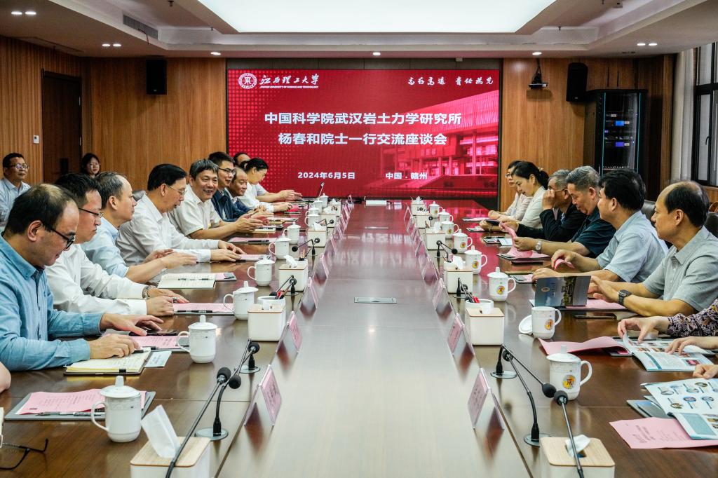 本网讯 6月5日上午,中国科学院武汉岩土力学研究所杨春和院士,党委书记、副所长陆凯阳一行来校交流。校党委书记杨斌,党委副书记罗仙平,党委常委、副校长唐云志在三江校区濂溪楼2号会议室会见来宾并召开交流座谈会。学校党委(校长)办公室、党委组织部、研究生院、发展规划处、科学技术处等相关部门、学院负责人参加会议。会议由罗仙平主持。