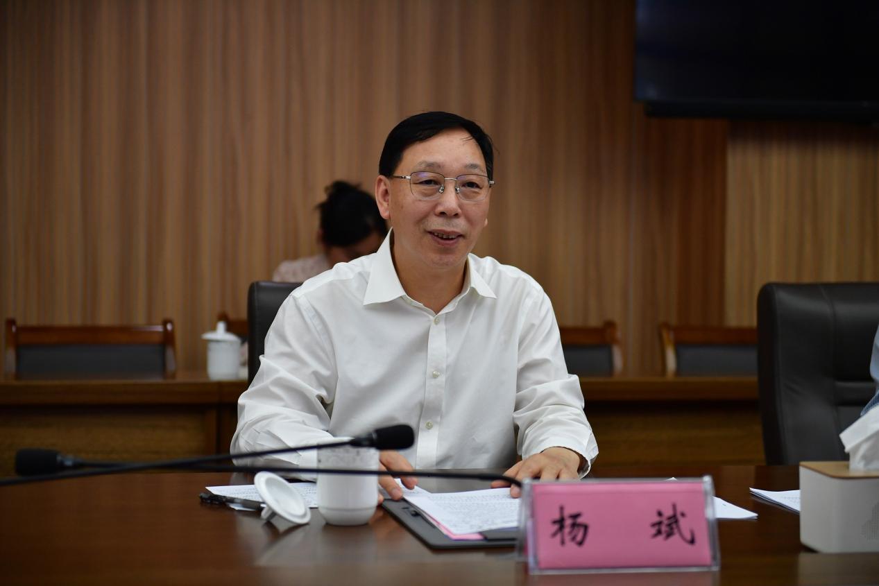 的大力支持和无私帮助表示衷心感谢。他指出,学校正处于推进“双一流”建设的关键时期,希望中国科学技术大学一如既往地加强对学校的关心和支持,全面增进合作友谊、深化合作互信,共同推动学校事业高质量发展更上新台阶。为了更好落实、对接好对口帮扶的相关工作,建设稀土领域世界一流学科,杨斌提出三点期望:一是要聚焦赣南稀土资源的开发,充分利用好中国科学技术大学的创新力量资源,助力革命老区高质量发展。二是要聚焦优势将人才、科技、资源引导到支撑学校学科建设、人才培养上来,助力学校高层次人才队伍建设。三是要加强两校人员沟通交流,尤其是加强双方挂职交流,助力学校各项事业高质量发展取得实效。