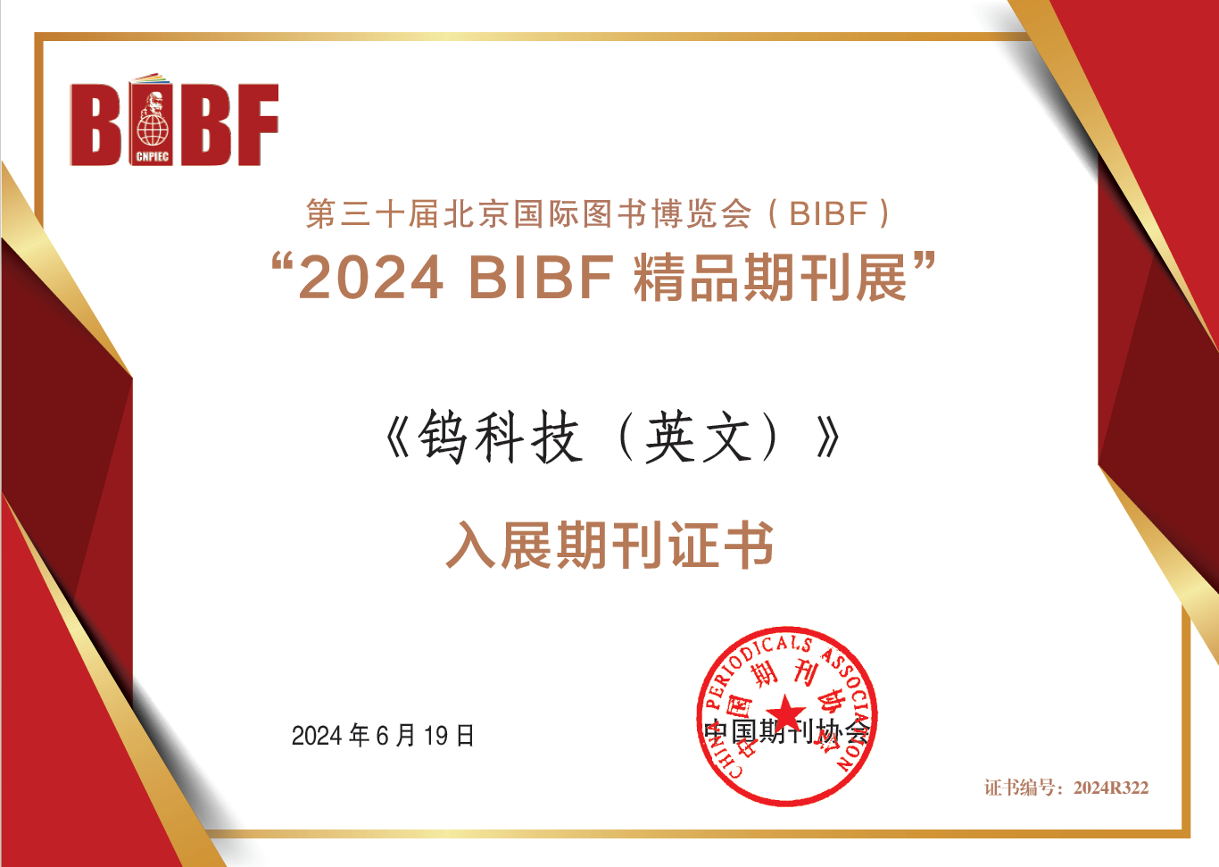 《钨科技(英文)》入展第三十届北京国际图书博览会(BIBF)“2024中国精品期刊展”