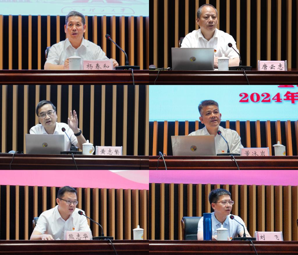 杨斌表示,及时学习并贯彻落实党的二十届三中全会精神和江西高校党委书记、校长提升政治能力培训班精神,能有效提升全体干部的政治能力和业务能力,开拓视野,凝聚共识。杨斌强调,要在应用研究和基础研究之间寻求更加均衡的发展,在新增学位点等方面继续努力;要关注优势学科和新兴学科发展的必要性;要依托国家和地方的支持,加强校企合作,提升学科建设与技术研发能力;要促进高层次人才培养,加强团队廉洁自律建设和内部凝聚力。