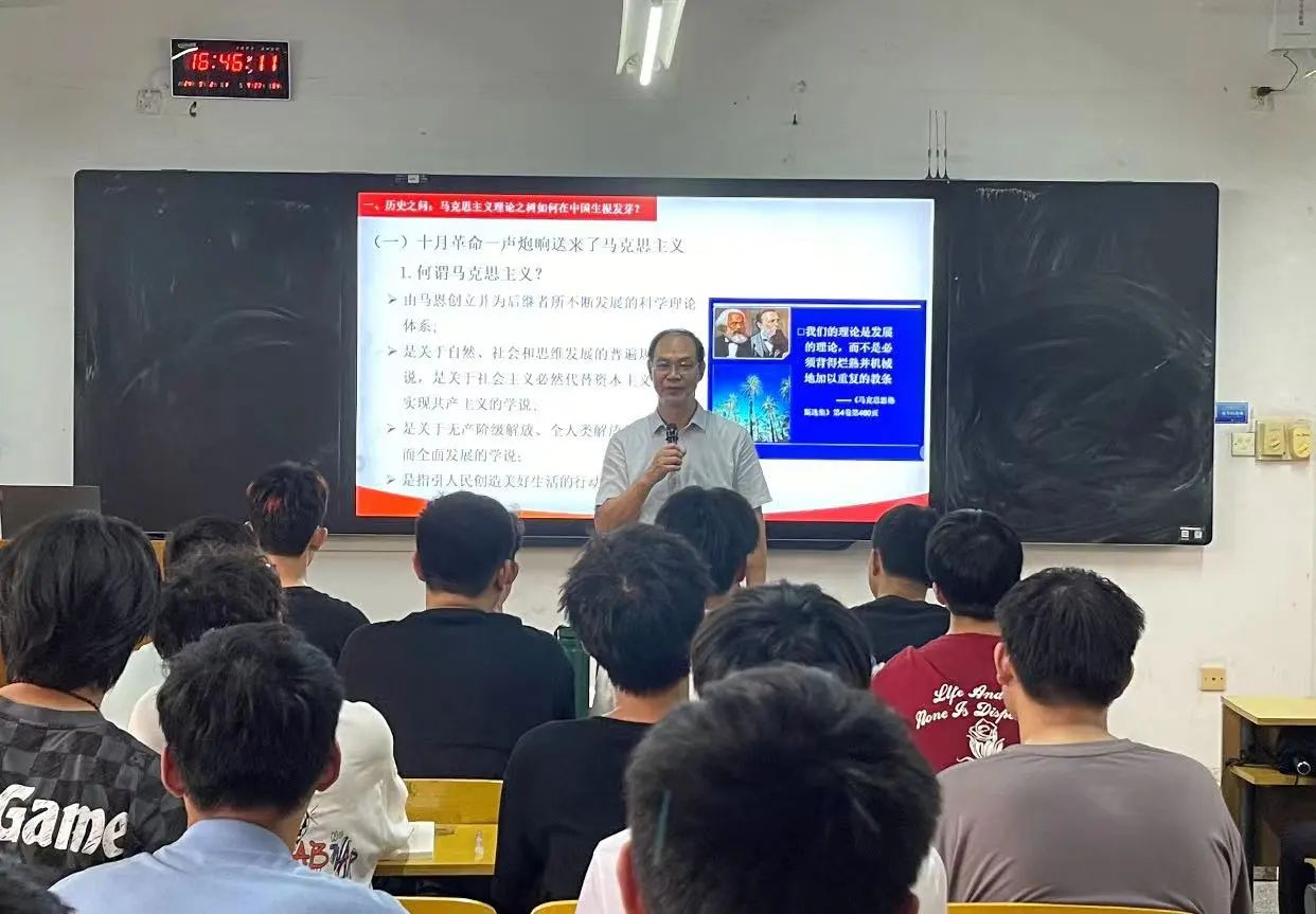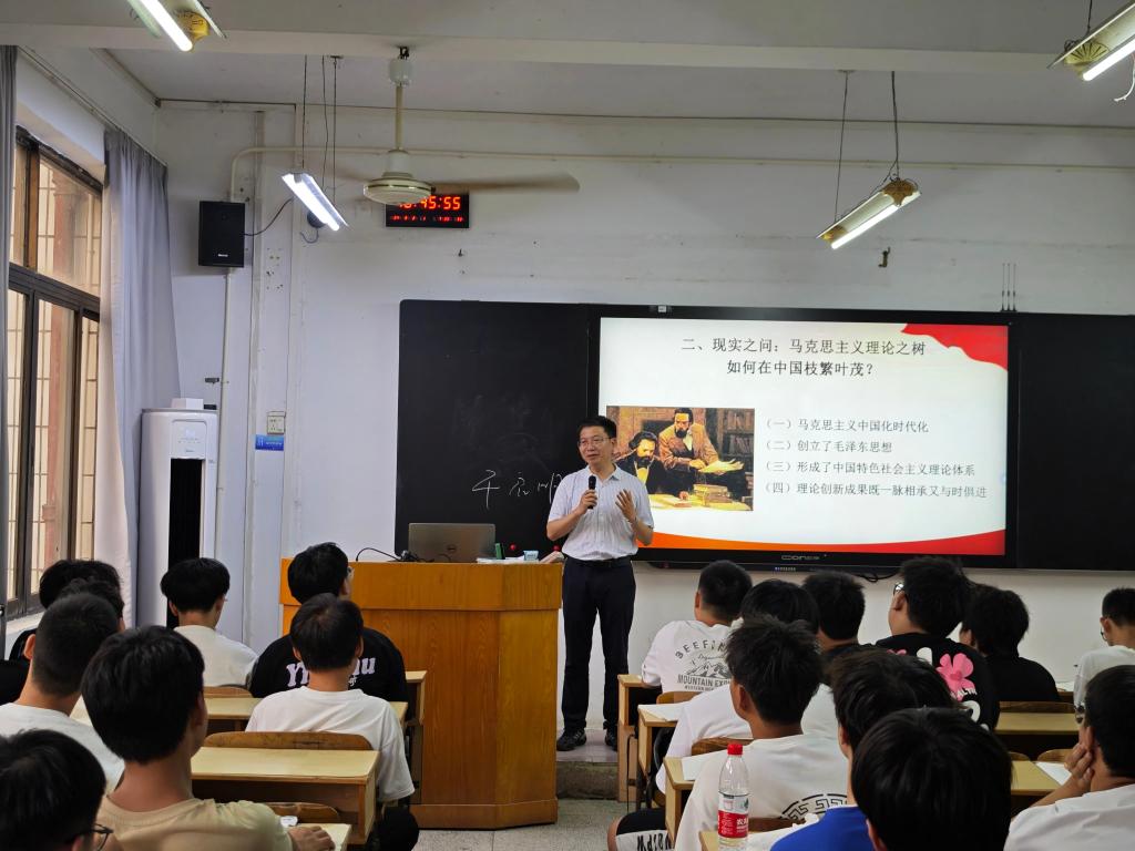 党委常委、副校长廖春发深入红旗校区聆听《毛泽东思想和中国特色社会主义理论体系概论》,并勉励同学们要做到价值引领、努力学习、培养能力,为国家作出贡献。