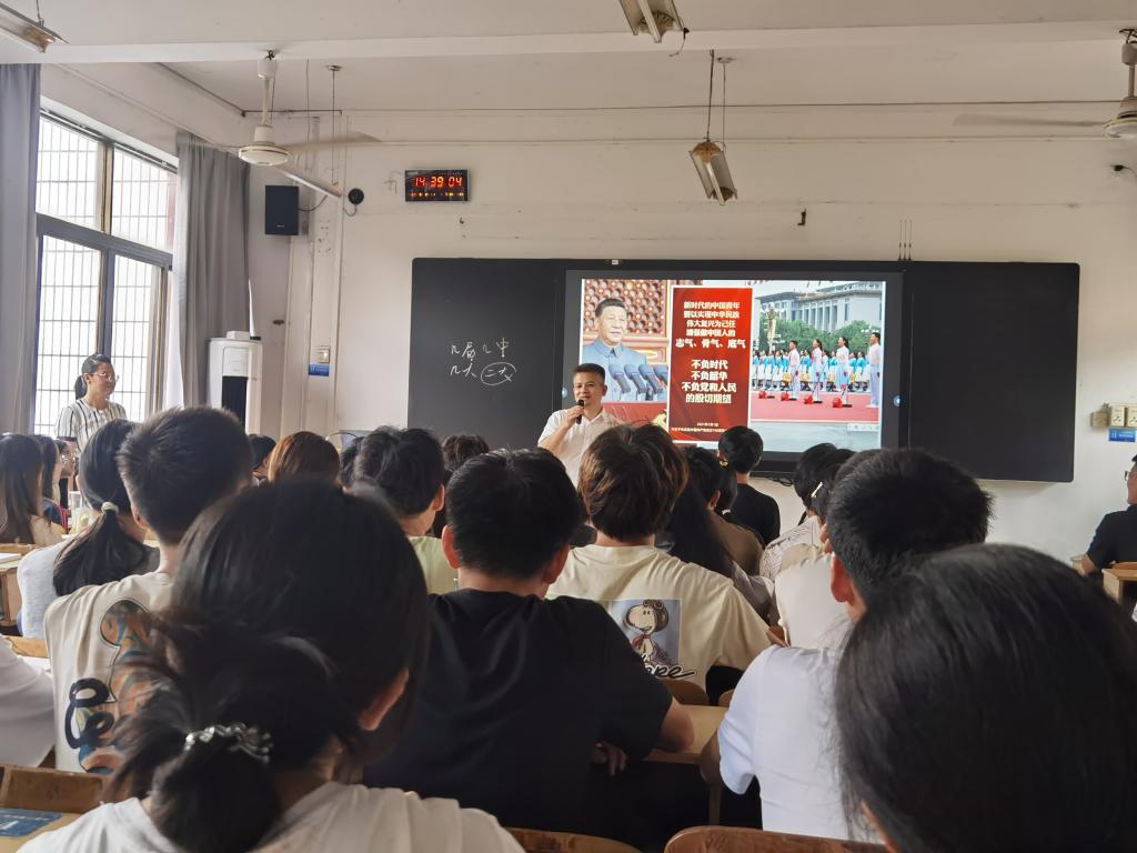 党委常委、副校长董冰岩深入红旗校区听《毛泽东思想和中国特色社会主义理论体系概论》第一课,课间与同学们进行了亲切交流,并以学长的身份勉励同学们要“志存高远、勇担责任、热爱祖国”。