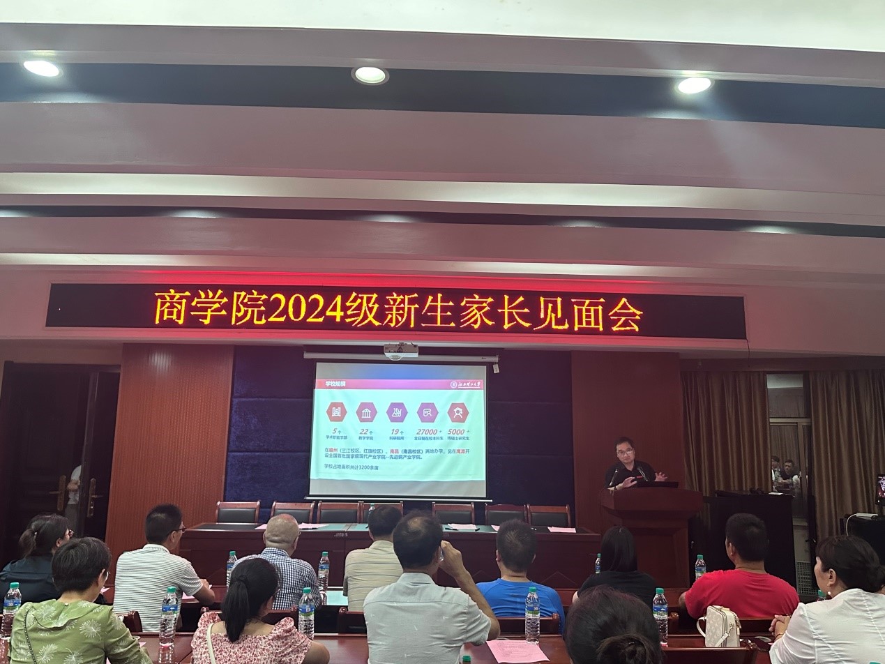 校党委常委、副校长黄志繁来到商学院,向学生和家长介绍了学校的发展历程和未来规划。他特别强调了学生安全的重要性,包括提高防诈骗意识和注意返校安全。黄志繁鼓励家长在孩子成年后适当放手,以促进孩子的独立性,并建议家长适应大学教育的新环境,共同支持孩子的成长。他强调,大学教育的目标是培养学生解决问题的能力,并希望家长在精神上给予孩子支持,帮助他们全面发展,实现个人目标。