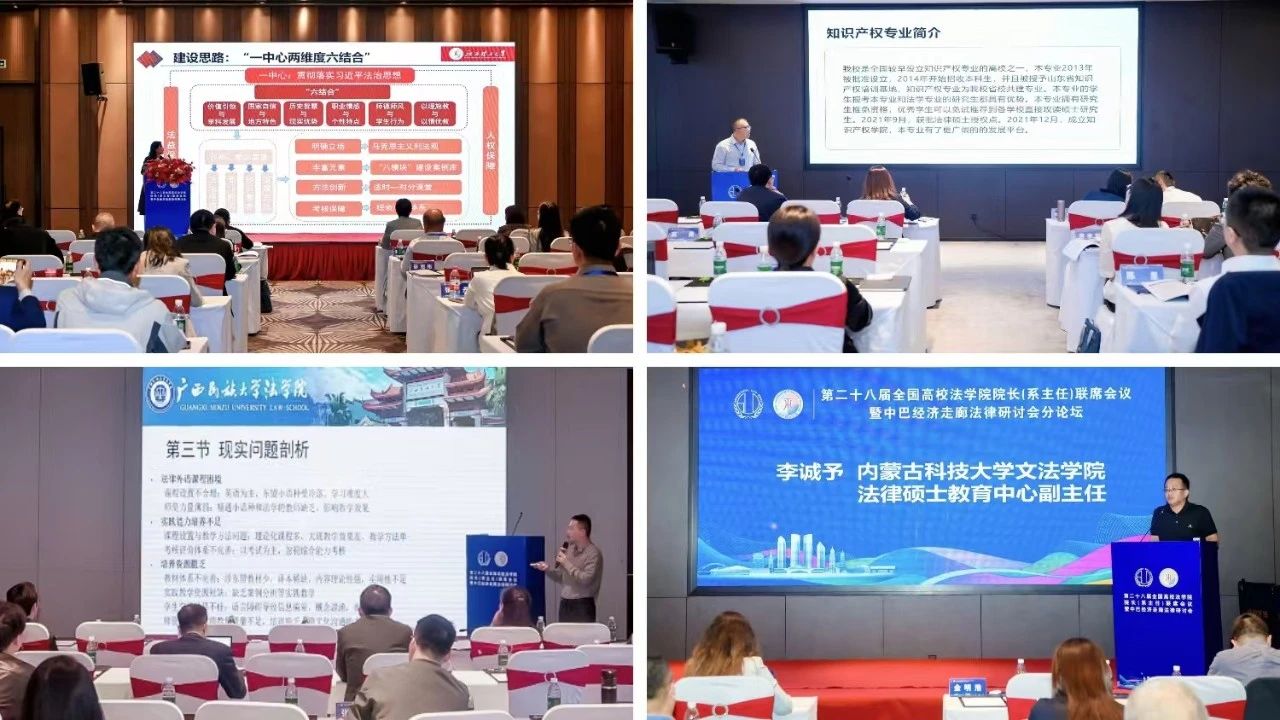 法学院副院长张奇分别作题为《法学研究生专业学位改革和人才培养探索》《“一带一路”背景下多语种涉外法治人才培养模式创新实践》《巴基斯坦法学人才培养》《法律大模型的行业影响与应用探索》《红色法治人才培养探索与实践》的主旨发言。