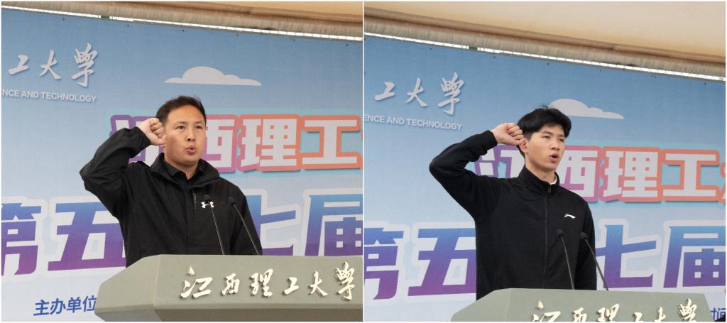 体育与艺术学院罗圣耀老师代表全体裁判员宣誓,将严格遵守比赛规则,公正裁决确保比赛的公平性和公正性;冶金工程学院新能源233班张福财同学代表全体运动员宣誓,承诺将发扬体育精神,顽强拼搏赛出风格,赛出水平。