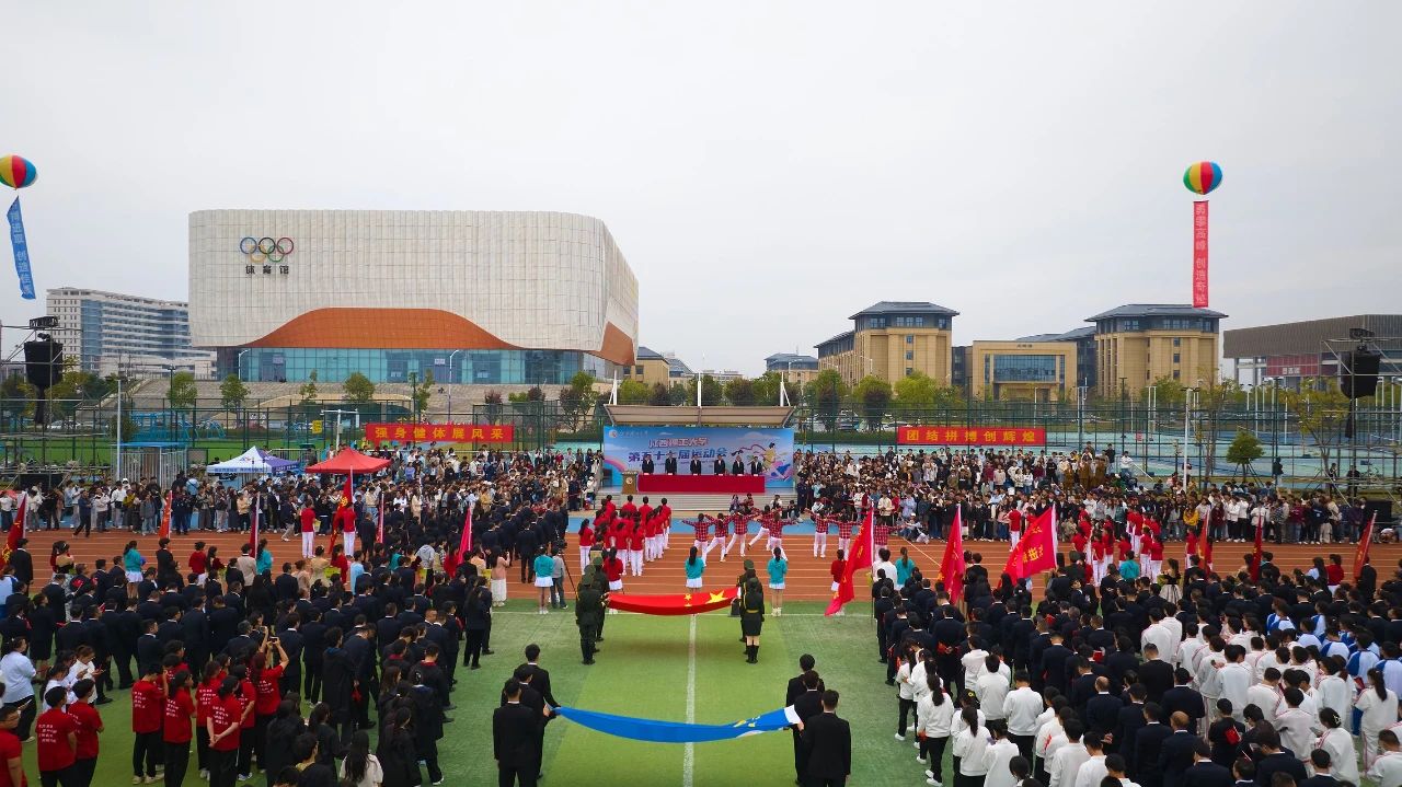 第五十七届运动会在三江校区田径场举行。校党委书记杨斌,校党委常委、副校长龚姚腾、廖春发、唐云志,校党委常委、纪委书记、监察专员刘飞出席开幕式,第五十七届运动会组织委员会成员以及运动员代表参加开幕式。开幕式由校党委(校长)办公室主任、校体育运动委员会秘书长熊淑华主持。