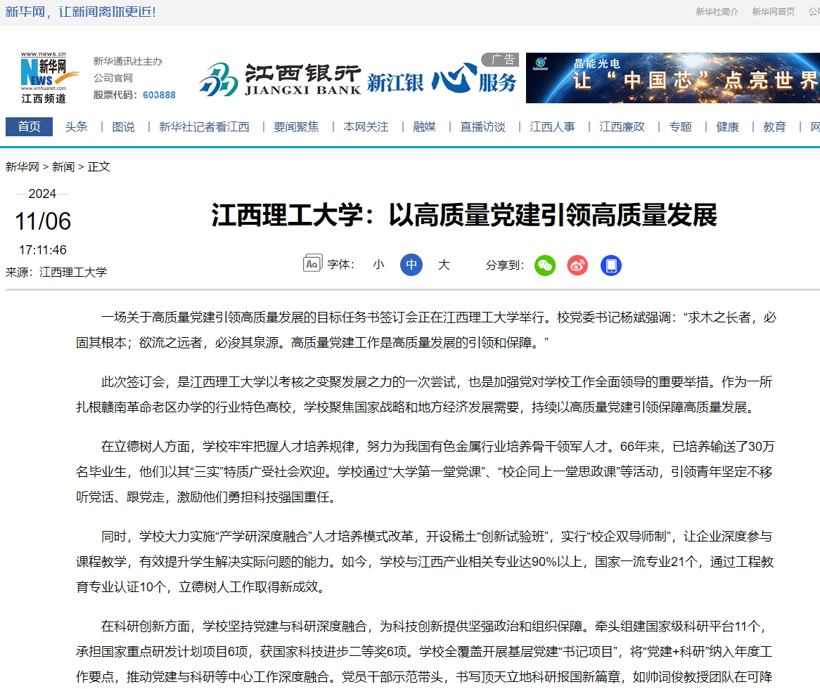 学校正以高质量党建为引领,不断开创高质量发展新篇章,为服务国家战略和地方经济发展贡献江理力量。