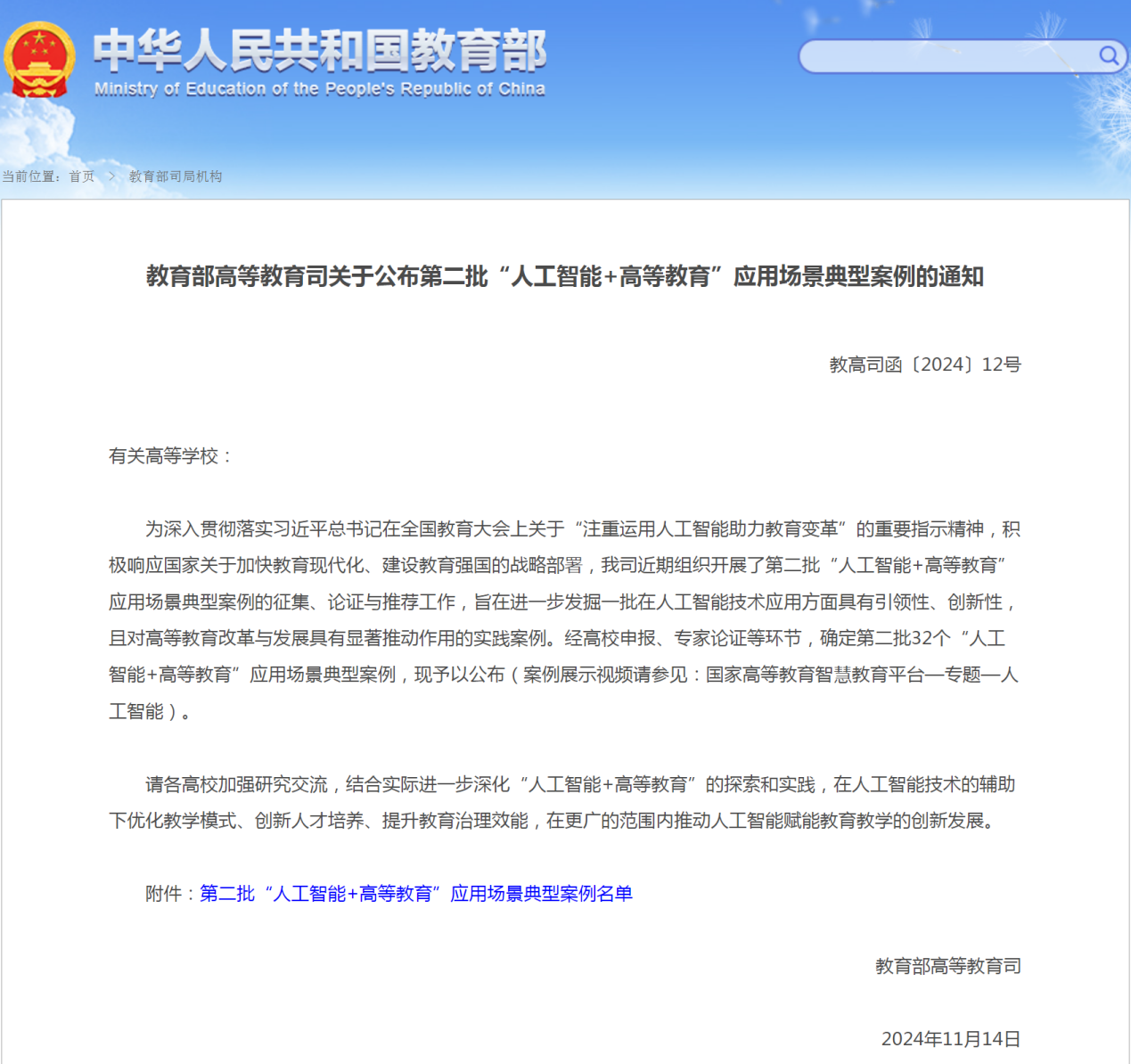 本网讯 近日,教育部高教司公布了全国第二批32个“人工智能+高等教育”应用场景典型案例,西瓜下载