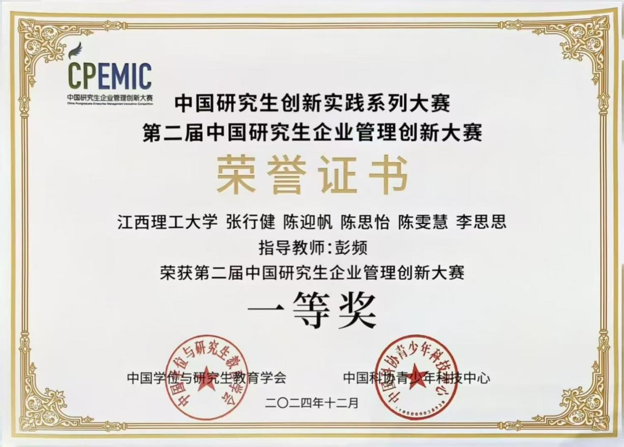 应急管理与安全工程学院研究生张行健、陈迎帆、陈思怡、陈雯慧、李思思组成的参赛团队(指导老师:彭频)荣获大赛一等奖。