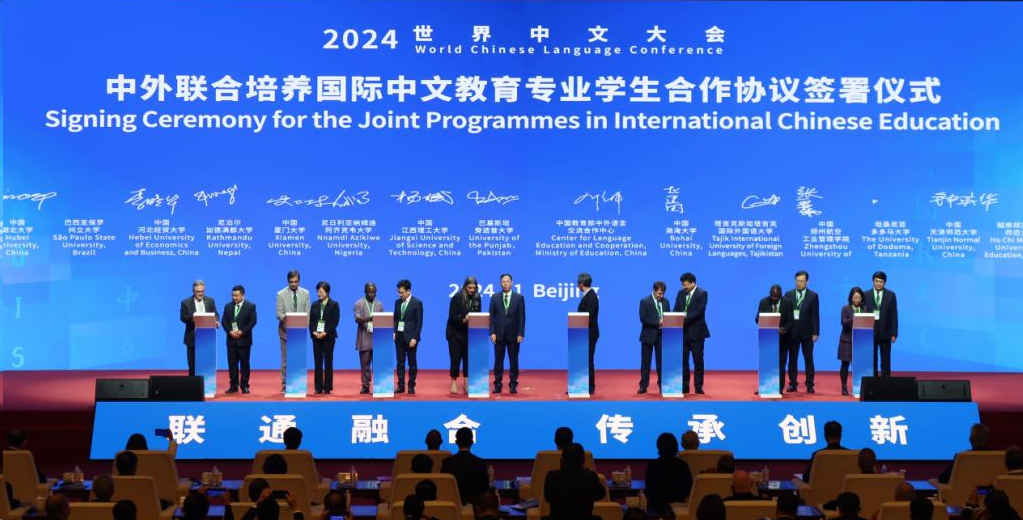11月15日-17日,校党委书记杨斌出席2024年世界中文大会。开幕式上,杨斌代表学校与巴基斯坦旁遮普大学、教育部中外语言交流合作中心签署了“中外联合培养国际中文教育专业学生的三方合作协议”。西瓜下载