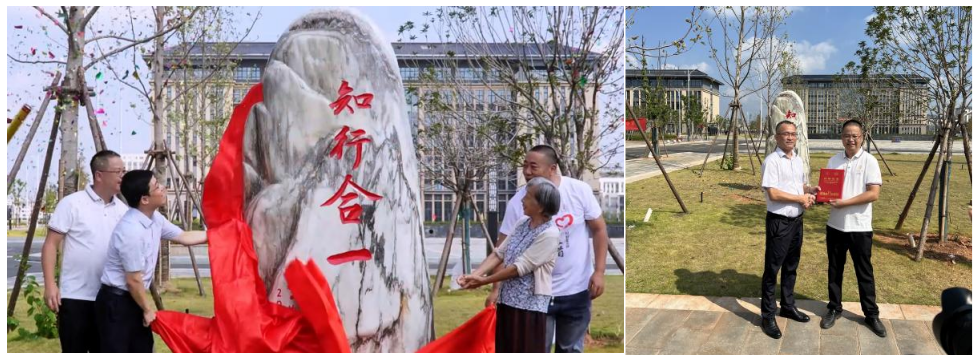 会议伊始,在三江校区(西园)举行了捐赠揭幕仪式。原材料化学学院2001级全体校友专程为母校捐赠了一方刻有“知行合一”的纪念石。汪航与师生代表、校友代表共同为纪念石揭幕,许洪胤向校友代表颁发了捐赠证书。恩师与学子再聚首,随着红色帷幕的落下,更多的是揭开了那段珍藏于心的青春记忆。这座纪念石不仅为校园添了一处新景,更成为校友与母校血脉相连、情谊永固的象征。