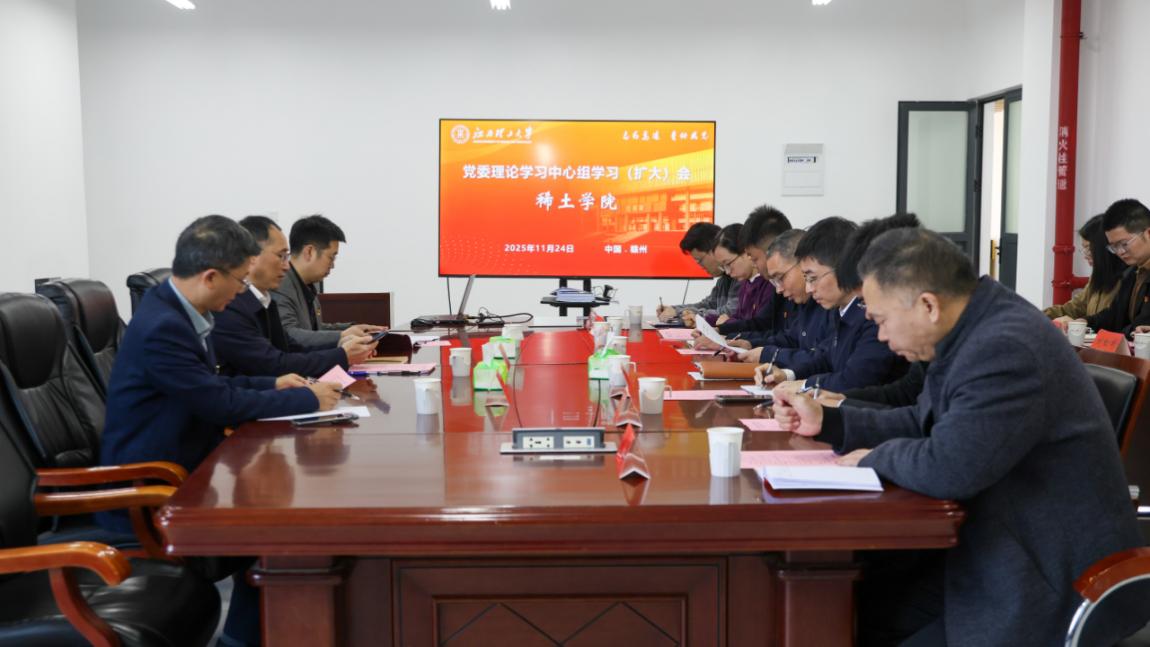 本网讯  11月24日,稀土学院党委在三江校区(西园)霞光楼308召开理论学习中心组(扩大)学习会。校党委书记刘祖文、副校长汪航到会指导。经济管理学院党委书记曾国华应邀交叉旁听,马克思主义学院副院长王经北应邀作辅导报告,会议由稀土学院党委副书记(主持工作)吴子平主持。