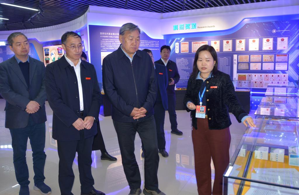 陆桂华一行在南昌校区综合实验楼一楼大厅,首先观看了学校校情片,了解学校的发展历程与办学特色。随后,调研团队前往科技展厅,全面听取学校在人才培养、学科建设、科研创新等方面的成果汇报。