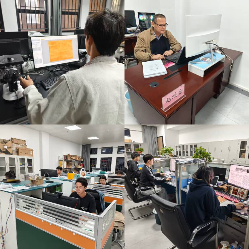 先进铜产业学院则聚焦科研实践攻坚,师生团队坚守岗位开展学术探索。部分团队围绕金属材料微观组织分析,通过显微镜观测与专业软件建模仿真,为新型工业材料研发积累实验数据;另有团队深耕学术论文打磨、前沿文献研讨与工程问题模拟推演,在实验室观测与头脑风暴中凝聚科研合力,彰显了严谨治学、追求卓越的科研底色。