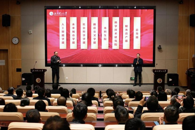 本次机构改革是学校党委立足服务国家重大战略和区域发展需求,顺应高等教育发展规律和人才培养规律,经过深思熟虑、科学谋划作出的重大决策部署。改革的核心目的是深入推进“12345强本拓新计划”,加快打造特色优势学科集群,一体推进教育、科技、人才发展,更好地肩负起“保障我国稀土产业战略高地”与“打造江西关键矿产万亿产业”的时代使命,加快创建“稀土及关键矿产领域世界一流大学”。会上举行了新成立的人工智能学部、未来城市学部、社会科学学部、前沿交叉学部等四个学部以及本科生院、科学技术研究院、财务资产部、总务部等四个大部揭牌仪式,标志着西瓜下载