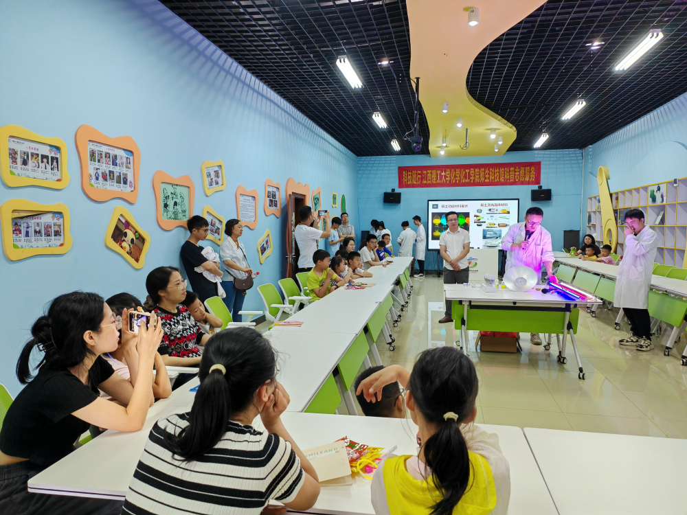 化学化工学院师生志愿者赴赣州市科技馆开展“科技随行”化学科普活动,为青少年们带来一场别开生面的专业科普课。应化党支部书记刘遂军、支部成员李辉、刘永生、孙益坚等一同参加活动。