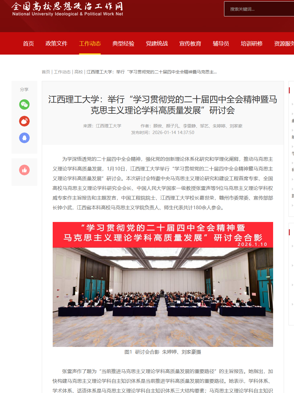 举行“学习贯彻党的二十届四中全会精神暨马克思主义理论学科高质量发展”研讨会。本次研讨会特邀中央马克思主义理论研究和建设工程首席专家、全国高校马克思主义理论学科研究会会长、中国人民大学国家一级教授张雷声等9位马克思主义理论学科权威专家作主旨报告和主题发言,中国工程院院士、西瓜视频