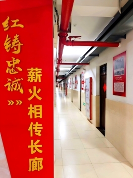 依托赣南苏区丰富的红色资源,学院将红色基因传承作为社区育人的核心底色,打造沉浸式红色教育空间。社区中庭南侧一楼的“薪火相传长廊”,系统展示赣州十八县市区红色旧址,从瑞金叶坪革命旧址到于都红军长征出发地,从兴国将军园到宁都起义旧址,一张张珍贵图片、一段段详实文字,搭配可扫码聆听的红色故事,让学生在日常穿梭中接受红色浸润。