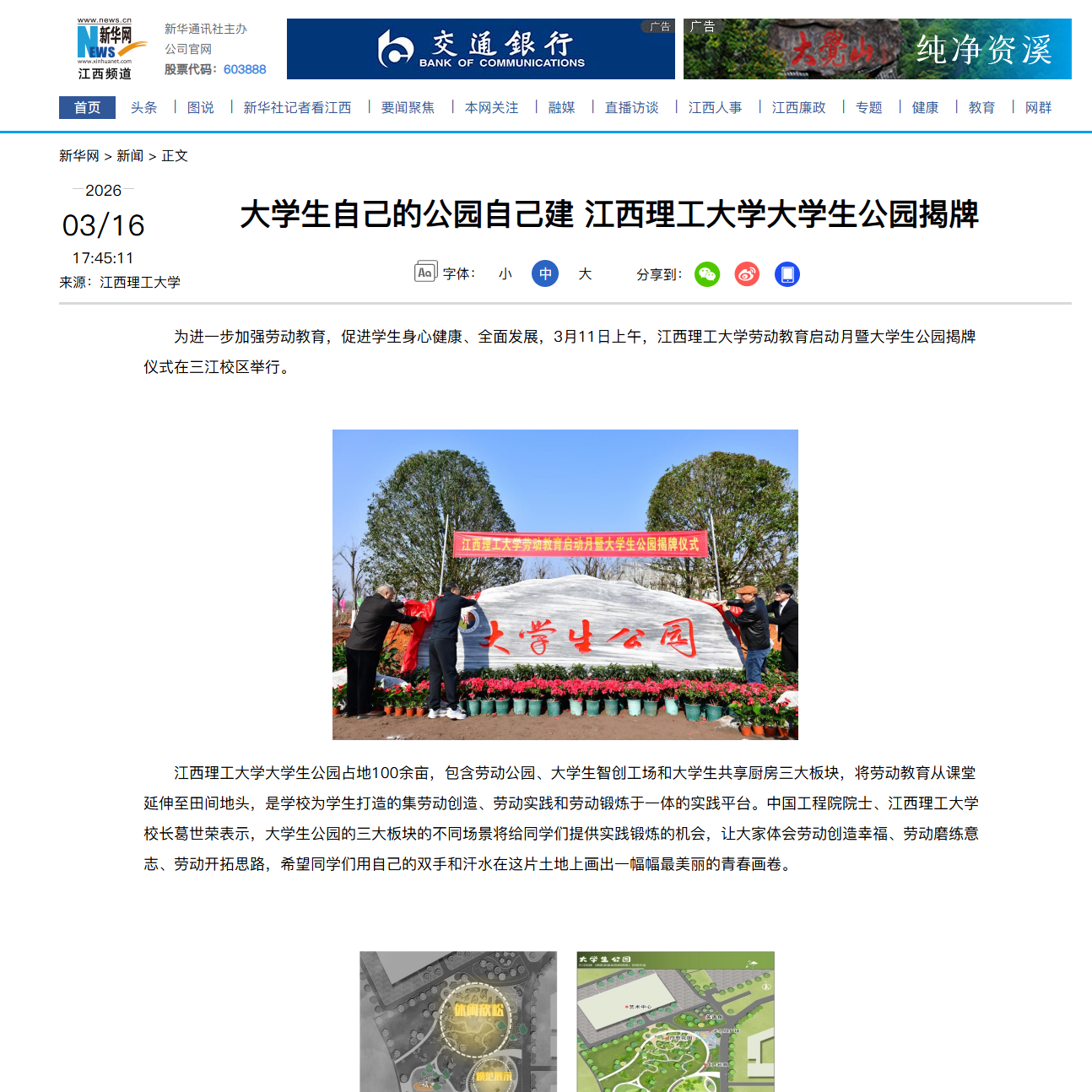 劳动教育启动月暨大学生公园揭牌仪式在三江校区举行。