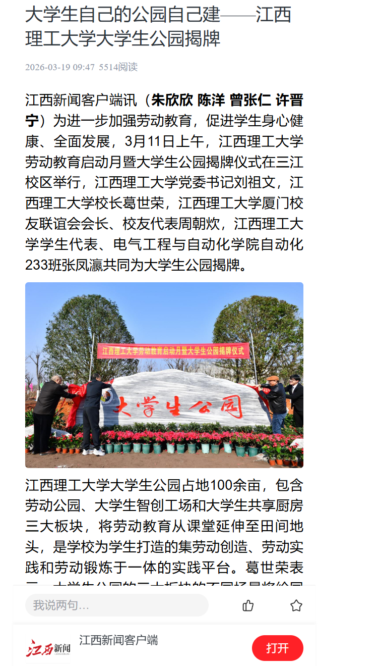 劳动教育启动月暨大学生公园揭牌仪式在三江校区举行,西瓜视频