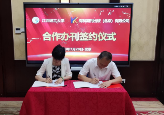 本网讯  7月28日下午,校党委常委、副校长唐云志率期刊社与出版中心主任曾伟明及科学技术处处长吴彩斌等人一行赴有科期刊出版(北京)有限公司参加双方新一期《钨科技(英文)》期刊合作办刊签约仪式。有科期刊出版(北京)有限公司董事长、总经理钱九红、副总经理马雯及技术总监李海亮等出席签约仪式。唐云志和钱九红分别代表双方签约。