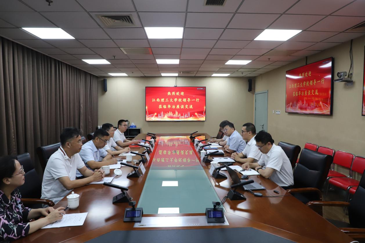 工程造价管理1998届校友)的介绍下参观了公司展厅,了解了集团公司的发展历程、资质荣誉、企业优势、业务范围、资源开发、工程承包、全球布局、思想引领、社会责任等情况。座谈交流中,马引代对刘飞一行到来表示欢迎,并回顾了自己在母校的求学时光,表达了对母校和老师的感激之情。刘飞结合学校在稀土战略资源及关键战略材料相关专业的人才培养优势和科研成果,阐述了与中国有色金属建设股份有限公司合作的契合点和潜在合作领域。双方围绕人才招聘与输送、产学研合作、实习基地建设等方面进行了深入探讨。