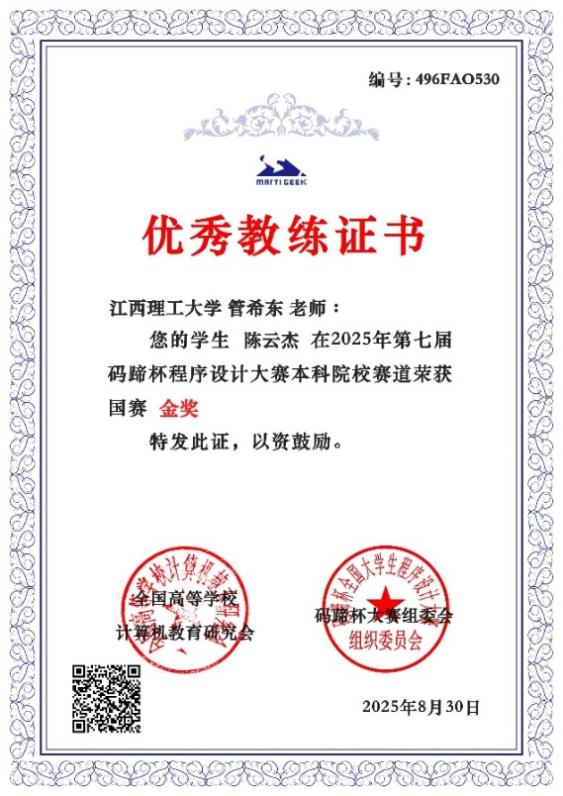 本网讯 近日,“码蹄杯”程序设计大赛组委会正式公布了2025年“码蹄杯”程序设计大赛全国总决赛成绩。西瓜下载 学子表现优异,共荣获金奖两项、银奖三项。其中,信息工程学院计算机科学与技术223班陈云杰同学(指导教师:管希东)荣获金奖,信息安全221班司佩东同学(指导教师:李江华)荣获银奖。