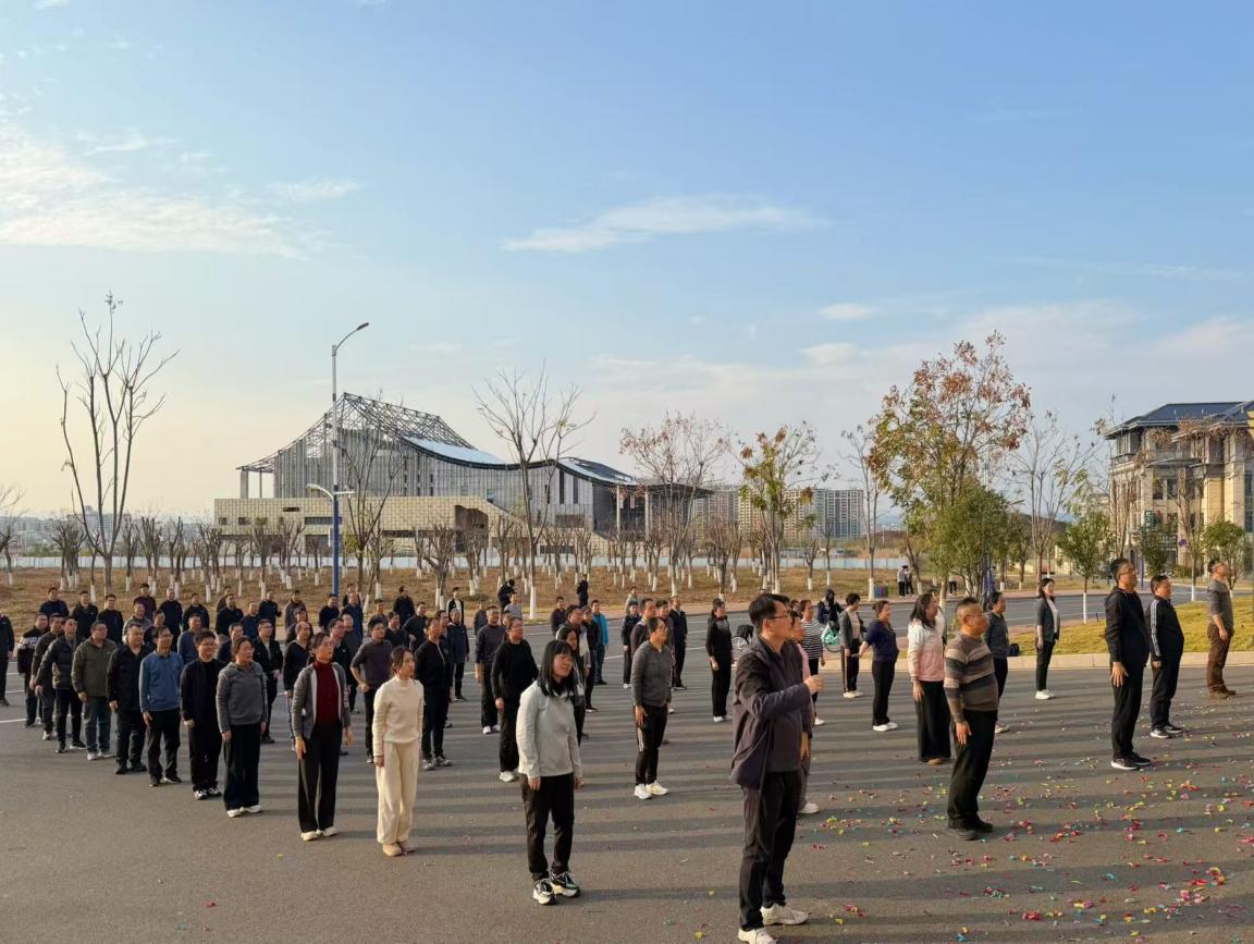 活动伊始,于仲安、刘细平、余育新先后登台致辞,向一年来辛勤耕耘的老师们送上新年祝福,并送上了学院“工会小家”的暖心福利,现场欢声笑语,暖意融融。在简短而热烈的启动仪式后,全体教职工共同练习了健身气功“八段锦”,大家动作整齐划一,在舒缓的音乐中舒展筋骨,提振精神。