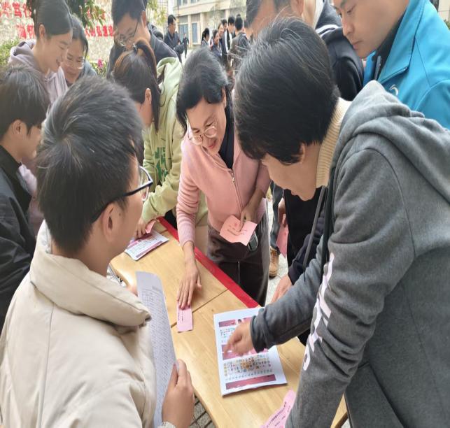 拔河比赛结束后,趣味十足的游园闯关活动拉开帷幕。活动现场设置创意关卡:“眼捷手快”投壶区考验精准与稳定,“图个明白”猜成语区比拼智慧与默契,“智力矩阵”数独区挑战逻辑与速度,“晕头转向乐”游戏区充满欢声笑语,“决胜脑力”答题区则聚焦学校管理制度,严肃又活泼。教职工们手持游园卡,兴致勃勃地穿梭于各个关卡之间,尽情享受趣味竞技带来的快乐,现场成为一片欢乐的海洋,成功集齐五枚印章的老师均获得了参与终极幸运抽奖的资格。